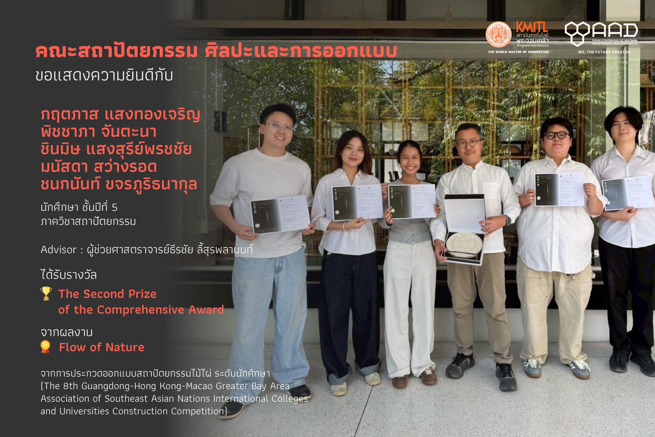 ขอแสดงความยินดีกับ นักศึกษา ชั้นปีที่ 5 ภาควิชาสถาปัตยกรรม ได้รับรางวัล The Second Prize of the Comprehensive Award จากการประกวดออกแบบสถาปัตยกรรมไม้ไผ่ ระดับนักศึกษา (The 8th Guangdong-Hong Kong-Macao Greater Bay Area Association of Southeast Asian Nations International Colleges and Universities Construction Competition)