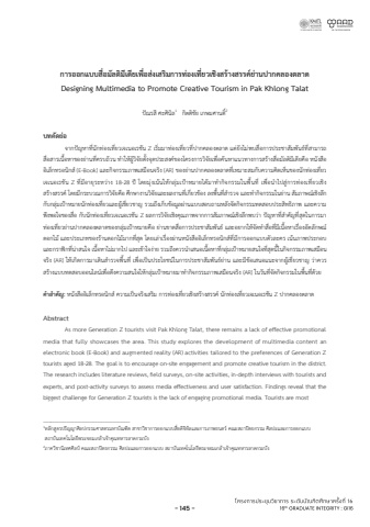 %u0e01%u0e32%u0e23%u0e2d%u0e2d%u0e01%u0e41%u0e1a%u0e1a%u0e2a%u0e37%u0e48%u0e2d%u0e21%u0e31%u0e25%u0e15%u0e34%u0e21%u0e35%u0e40%u0e14%u0e35%u0e22%u0e40%u0e1e%u0e37%u0e48%u0e2d%u0e2a%uf70a%u0e07%u0e40%u0e2a%u0e23%u0e34%u0e21%u0e01%u0e32%u0e23%u0e17%uf70a%u0e2d%u0e07%u0e40%u0e17%u0e35%u0e48%u0e22%u0e27%u0e40%u0e0a%u0e34%u0e07%u0e2a%u0e23%uf70b%u0e32%u0e07%u0e2a%u0e23%u0e23%u0e04%uf70e%u0e22%uf70a%u0e32%u0e19%u0e1b%u0e32%u0e01%u0e04%u0e25%u0e2d%u0e07%u0e15%u0e25%u0e32%u0e14Designing Multimedia to Promote Creative Tourism in Pak Khlong Talat %u0e1b%uf710%u0e13%u0e23%u0e2a%u0e35%u0e28%u0e30%u0e28%u0e34%u0e19%u0e34%u0e251 %u0e01%u0e34%u0e15%u0e15%u0e34%u0e0a%u0e31%u0e22 %u0e40%u0e01%u0e29%u0e21%u0e28%u0e32%u0e19%u0e15%u0e34%u0e4c2%u0e1a%u0e17%u0e04%u0e31%u0e14%u0e22%uf70a%u0e2d %u0e08%u0e32%u0e01%u0e1b%uf710%u0e0d%u0e2b%u0e32%u0e17%u0e35%u0e48%u0e19%u0e31%u0e01%u0e17%uf70a%u0e2d%u0e07%u0e40%u0e17%u0e35%u0e48%u0e22%u0e27%u0e40%u0e08%u0e40%u0e19%u0e2d%u0e40%u0e23%u0e0a%u0e31%u0e19 Z %u0e40%u0e23%u0e34%u0e48%u0e21%u0e21%u0e32%u0e17%uf70a%u0e2d%u0e07%u0e40%u0e17%u0e35%u0e48%u0e22%u0e27%u0e17%u0e35%u0e48%u0e1b%u0e32%u0e01%u0e04%u0e25%u0e2d%u0e07%u0e15%u0e25%u0e32%u0e14 %u0e41%u0e15%uf70a%u0e22%u0e31%u0e07%u0e44%u0e21%uf70a%u0e1e%u0e1a%u0e2a%u0e37%u0e48%u0e2d%u0e01%u0e32%u0e23%u0e1b%u0e23%u0e30%u0e0a%u0e32%u0e2a%u0e31%u0e21%u0e1e%u0e31%u0e19%u0e18%uf70e%u0e17%u0e35%u0e48%u0e2a%u0e32%u0e21%u0e32%u0e23%u0e16%u0e2a%u0e37%u0e48%u0e2d%u0e2a%u0e32%u0e23%u0e40%u0e19%u0e37%u0e49%u0e2d%u0e2b%u0e32%u0e02%u0e2d%u0e07%u0e22%uf70a%u0e32%u0e19%u0e17%u0e35%u0e48%u0e04%u0e23%u0e1a%u0e16%uf70b%u0e27%u0e19 %u0e17%u0e33%u0e43%u0e2b%uf70b%u0e1c%u0e39%uf70b%u0e27%u0e34%u0e08%u0e31%u0e22%u0e15%u0e31%u0e49%u0e07%u0e08%u0e38%u0e14%u0e1b%u0e23%u0e30%u0e2a%u0e07%u0e04%uf70e%u0e02%u0e2d%u0e07%u0e42%u0e04%u0e23%u0e07%u0e01%u0e32%u0e23%u0e27%u0e34%u0e08%u0e31%u0e22%u0e40%u0e1e%u0e37%u0e48%u0e2d%u0e04%uf70b%u0e19%u0e2b%u0e32%u0e41%u0e19%u0e27%u0e17%u0e32%u0e07%u0e01%u0e32%u0e23%u0e2a%u0e23%uf70b%u0e32%u0e07%u0e2a%u0e37%u0e48%u0e2d%u0e21%u0e31%u0e25%u0e15%u0e34%u0e21%u0e35%u0e40%u0e14%u0e35%u0e22%u0e04%u0e37%u0e2d %u0e2b%u0e19%u0e31%u0e07%u0e2a%u0e37%u0e2d%u0e2d%u0e34%u0e40%u0e25%u0e47%u0e01%u0e17%u0e23%u0e2d%u0e19%u0e34%u0e01%u0e2a%uf70e (E-Book) %u0e41%u0e25%u0e30%u0e01%u0e34%u0e08%u0e01%u0e23%u0e23%u0e21%u0e20%u0e32%u0e1e%u0e40%u0e2a%u0e21%u0e37%u0e2d%u0e19%u0e08%u0e23%u0e34%u0e07 (AR) %u0e02%u0e2d%u0e07%u0e22%uf70a%u0e32%u0e19%u0e1b%u0e32%u0e01%u0e04%u0e25%u0e2d%u0e07%u0e15%u0e25%u0e32%u0e14%u0e17%u0e35%u0e48%u0e40%u0e2b%u0e21%u0e32%u0e30%u0e2a%u0e21%u0e01%u0e31%u0e1a%u0e04%u0e27%u0e32%u0e21%u0e04%u0e34%u0e14%u0e40%u0e2b%u0e47%u0e19%u0e02%u0e2d%u0e07%u0e19%u0e31%u0e01%u0e17%uf70a%u0e2d%u0e07%u0e40%u0e17%u0e35%u0e48%u0e22%u0e27%u0e40%u0e08%u0e40%u0e19%u0e2d%u0e40%u0e23%u0e0a%u0e31%u0e19 Z %u0e17%u0e35%u0e48%u0e21%u0e35%u0e2d%u0e32%u0e22%u0e38%u0e23%u0e30%u0e2b%u0e27%uf70a%u0e32%u0e07 18-28 %u0e1b%uf702%u0e42%u0e14%u0e22%u0e21%u0e38%uf70a%u0e07%u0e40%u0e19%uf70b%u0e19%u0e43%u0e2b%uf70b%u0e01%u0e25%u0e38%uf70a%u0e21%u0e40%u0e1b%uf706%u0e32%u0e2b%u0e21%u0e32%u0e22%u0e44%u0e14%uf70b%u0e21%u0e32%u0e17%u0e33%u0e01%u0e34%u0e08%u0e01%u0e23%u0e23%u0e21%u0e43%u0e19%u0e1e%u0e37%u0e49%u0e19%u0e17%u0e35%u0e48%u0e40%u0e1e%u0e37%u0e48%u0e2d%u0e19%u0e33%u0e44%u0e1b%u0e2a%u0e39%uf70a%u0e01%u0e32%u0e23%u0e17%uf70a%u0e2d%u0e07%u0e40%u0e17%u0e35 %u0e48%u0e22%u0e27%u0e40%u0e0a%u0e34%u0e07%u0e2a%u0e23%uf70b%u0e32%u0e07%u0e2a%u0e23%u0e23%u0e04%uf70e%u0e42%u0e14%u0e22%u0e21%u0e35%u0e01%u0e23%u0e30%u0e1a%u0e27%u0e13%u0e01%u0e32%u0e23%u0e27%u0e34%u0e08%u0e31%u0e22%u0e04%u0e37%u0e2d%u0e28%u0e36%u0e01%u0e29%u0e32%u0e07%u0e32%u0e19%u0e27%u0e34%u0e08%u0e31%u0e22%u0e41%u0e25%u0e30%u0e1c%u0e25%u0e07%u0e32%u0e19%u0e17%u0e35%u0e48%u0e40%u0e01%u0e35%u0e48%u0e22%u0e27%u0e02%uf70b%u0e2d%u0e07 %u0e25%u0e07%u0e1e%u0e37%u0e49%u0e19%u0e17%u0e2a%u0e33%u0e23%u0e27%u0e08 %u0e35%u0e48 %u0e41%u0e25%u0e30%u0e17%u0e33%u0e01%u0e34%u0e08%u0e01%u0e23%u0e23%u0e21%u0e43%u0e19%u0e22%uf70a%u0e32%u0e19 %u0e2a%u0e31%u0e21%u0e20%u0e32%u0e29%u0e13%uf70e%u0e40%u0e0a%u0e34%u0e07%u0e25%u0e36%u0e01%u0e01%u0e31%u0e1a%u0e01%u0e25%u0e38%uf70a%u0e21%u0e40%u0e1b%uf706%u0e32%u0e2b%u0e21%u0e32%u0e22%u0e19%u0e31%u0e01%u0e17%uf70a%u0e2d%u0e07%u0e40%u0e17%u0e35%u0e48%u0e22%u0e27%u0e41%u0e25%u0e30%u0e1c%u0e39%uf70b%u0e40%u0e0a%u0e35%u0e48%u0e22%u0e27%u0e0a%u0e32%u0e0d %u0e23%u0e27%u0e21%u0e16%u0e36%u0e07%u0e40%u0e01%u0e47%u0e1a%u0e02%uf70b%u0e2d%u0e21%u0e39%u0e25%u0e1c%uf70a%u0e32%u0e19%u0e41%u0e1a%u0e1a%u0e2a%u0e2d%u0e1a%u0e16%u0e32%u0e21%u0e2b%u0e25%u0e31%u0e07%u0e08%u0e31%u0e14%u0e01%u0e34%u0e08%u0e01%u0e23%u0e23%u0e21%u0e17%u0e14%u0e2a%u0e2d%u0e1a%u0e1b%u0e23%u0e30%u0e2a%u0e34%u0e17%u0e18%u0e34%u0e20%u0e32%u0e1e %u0e41%u0e25%u0e30%u0e04%u0e27%u0e32%u0e21%u0e1e%u0e36%u0e07%u0e1e%u0e2d%u0e43%u0e08%u0e02%u0e2d%u0e07%u0e2a%u0e37%u0e48%u0e2d %u0e01%u0e31%u0e1a%u0e19%u0e31%u0e01%u0e17%uf70a%u0e2d%u0e07%u0e40%u0e17%u0e35%u0e48%u0e22%u0e27%u0e40%u0e08%u0e40%u0e19%u0e2d%u0e40%u0e23%u0e0a%u0e31%u0e19 Z %u0e1c%u0e25%u0e01%u0e32%u0e23%u0e27%u0e34%u0e08%u0e31%u0e22%u0e40%u0e0a%u0e34%u0e07%u0e04%u0e38%u0e13%u0e20%u0e32%u0e1e%u0e08%u0e32%u0e01%u0e01%u0e32%u0e23%u0e2a%u0e31%u0e21%u0e20%u0e32%u0e29%u0e13%uf70e%u0e40%u0e0a%u0e34%u0e07%u0e25%u0e36%u0e01%u0e1e%u0e1a%u0e27%uf70a%u0e32 %u0e1b%uf710%u0e0d%u0e2b%u0e32%u0e17%u0e35%u0e48%u0e2a%u0e33%u0e04%u0e31%u0e0d%u0e17%u0e35%u0e48%u0e2a%u0e38%u0e14%u0e43%u0e19%u0e01%u0e32%u0e23%u0e21%u0e32%u0e17%uf70a%u0e2d%u0e07%u0e40%u0e17%u0e35%u0e48%u0e22%u0e27%u0e22%uf70a%u0e32%u0e19%u0e1b%u0e32%u0e01%u0e04%u0e25%u0e2d%u0e07%u0e15%u0e25%u0e32%u0e14%u0e02%u0e2d%u0e07%u0e01%u0e25%u0e38%uf70a%u0e21%u0e40%u0e1b%uf706%u0e32%u0e2b%u0e21%u0e32%u0e22%u0e04%u0e37%u0e2d %u0e22%uf70a%u0e32%u0e19%u0e02%u0e32%u0e14%u0e2a%u0e37%u0e48%u0e2d%u0e01%u0e32%u0e23%u0e1b%u0e23%u0e30%u0e0a%u0e32%u0e2a%u0e31%u0e21%u0e1e%u0e31%u0e19%u0e18%uf70e%u0e41%u0e25%u0e30%u0e2d%u0e22%u0e32%u0e01%u0e43%u0e2b%uf70b%u0e08%u0e31%u0e14%u0e17%u0e33%u0e2a%u0e37%u0e48%u0e2d%u0e17%u0e35%u0e48%u0e21%u0e35%u0e40%u0e19%u0e37%