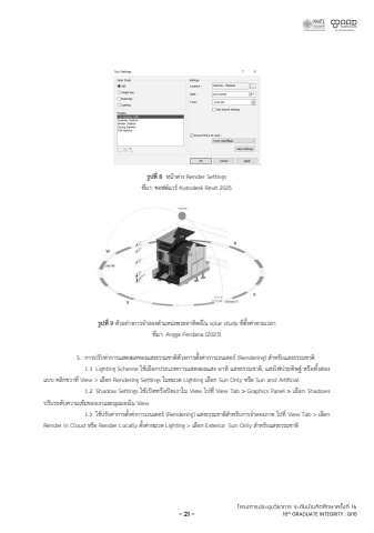 %u0e23%u0e39%u0e1b%u0e17%u0e35%u0e48 8 %u0e2b%u0e19%uf70b%u0e32%u0e15%uf70a%u0e32%u0e07 Render Settings %u0e17%u0e35%u0e48%u0e21%u0e32: %u0e0b%u0e2d%u0e1f%u0e15%uf70e%u0e41%u0e27%u0e23%uf70eAutodesk Revit 2025 %u0e23%u0e39%u0e1b%u0e17%u0e35%u0e48 9 %u0e15%u0e31%u0e27%u0e2d%u0e22%uf70a%u0e32%u0e07%u0e01%u0e32%u0e23%u0e08%u0e33%u0e25%u0e2d%u0e07%u0e15%u0e33%u0e41%u0e2b%u0e19%uf70a%u0e07%u0e1e%u0e23%u0e30%u0e2d%u0e32%u0e17%u0e34%u0e15%u0e22%uf70e%u0e43%u0e19 solar study %u0e17%u0e35%u0e48%u0e15%u0e31%u0e49%u0e07%u0e04%uf70a%u0e32%u0e15%u0e32%u0e21%u0e40%u0e27%u0e25%u0e32%u0e17%u0e35%u0e48%u0e21%u0e32: Angga Perdana (2023) 5. %u0e01%u0e32%u0e23%u0e1b%u0e23%u0e31%u0e1a%u0e04%uf70a%u0e32%u0e01%u0e32%u0e23%u0e41%u0e2a%u0e14%u0e07%u0e1c%u0e25%u0e02%u0e2d%u0e07%u0e41%u0e2a%u0e07%u0e18%u0e23%u0e23%u0e21%u0e0a%u0e32%u0e15%u0e34%u0e14%uf70b%u0e27%u0e22%u0e01%u0e32%u0e23%u0e15%u0e31%u0e49%u0e07%u0e04%uf70a%u0e32%u0e01%u0e32%u0e23%u0e40%u0e23%u0e19%u0e40%u0e14%u0e2d%u0e23%uf70e (Rendering) %u0e2a%u0e33%u0e2b%u0e23%u0e31%u0e1a%u0e41%u0e2a%u0e07%u0e18%u0e23%u0e23%u0e21%u0e0a%u0e32%u0e15%u0e34 1.1 Lighting Scheme %u0e43%u0e0a%uf70b%u0e40%u0e25%u0e37%u0e2d%u0e01%u0e1b%u0e23%u0e30%u0e40%u0e20%u0e17%u0e01%u0e32%u0e23%u0e41%u0e2a%u0e14%u0e07%u0e1c%u0e25%u0e41%u0e2a%u0e07 %u0e2d%u0e32%u0e17%u0e34%u0e41%u0e2a%u0e07%u0e18%u0e23%u0e23%u0e21%u0e0a%u0e32%u0e15%u0e34, %u0e41%u0e2a%u0e07%u0e44%u0e1f%u0e1b%u0e23%u0e30%u0e14%u0e34%u0e29%u0e10%uf70e%u0e2b%u0e23%u0e37%u0e2d%u0e17%u0e31%u0e49%u0e07%u0e2a%u0e2d%u0e07%u0e41%u0e1a%u0e1a %u0e04%u0e25%u0e34%u0e01%u0e02%u0e27%u0e32%u0e17%u0e35%u0e48 View > %u0e40%u0e25%u0e37%u0e2d%u0e01 Rendering Settings %u0e43%u0e19%u0e2b%u0e21%u0e27%u0e14 Lighting %u0e40%u0e25%u0e37%u0e2d%u0e01 Sun Only %u0e2b%u0e23%u0e37%u0e2d Sun and Artificial 1.2 Shadow Settings %u0e43%u0e0a%uf70b%u0e40%u0e1b%uf701%u0e14%u0e2b%u0e23%u0e37%u0e2d%u0e1b%uf701%u0e14%u0e40%u0e07%u0e32%u0e43%u0e19 View %u0e44%u0e1b%u0e17%u0e35%u0e48 View Tab > Graphics Panel > %u0e40%u0e25%u0e37%u0e2d%u0e01 Shadows%u0e1b%u0e23%u0e31%u0e1a%u0e23%u0e30%u0e14%u0e31%u0e1a%u0e04%u0e27%u0e32%u0e21%u0e40%u0e02%uf70b%u0e21%u0e02%u0e2d%u0e07%u0e40%u0e07%u0e32%u0e41%u0e25%u0e30%u0e21%u0e38%u0e21%u0e21%u0e2d%u0e07%u0e43%u0e19 View 1.3 %u0e43%u0e0a%uf70b%u0e1b%u0e23%u0e31%u0e1a%u0e04%uf70a%u0e32%u0e01%u0e32%u0e23%u0e15%u0e31%u0e49%u0e07%u0e04%uf70a%u0e32%u0e01%u0e32%u0e23%u0e40%u0e23%u0e19%u0e40%u0e14%u0e2d%u0e23%uf70e (Rendering) %u0e41%u0e2a%u0e07%u0e18%u0e23%u0e23%u0e21%u0e0a%u0e32%u0e15%u0e34%u0e2a%u0e33%u0e2b%u0e23%u0e31%u0e1a%u0e01%u0e32%u0e23%u0e08%u0e33%u0e25%u0e2d%u0e07%u0e20%u0e32%u0e1e %u0e44%u0e1b%u0e17%u0e35%u0e48 View Tab > %u0e40%u0e25%u0e37%u0e2d%u0e01Render in Cloud %u0e2b%u0e23%u0e37%u0e2d Render Locally %u0e15%u0e31%u0e49%u0e07%u0e04%uf70a%u0e32%u0e2b%u0e21%u0e27%u0e14 Lighting > %u0e40%u0e25%u0e37%u0e2d%u0e01 Exterior: Sun Only %u0e2a%u0e33%u0e2b%u0e23%u0e31%u0e1a%u0e41%u0e2a%u0e07%u0e18%u0e23%u0e23%u0e21%u0e0a%u0e32%u0e15%u0e34- 21 -