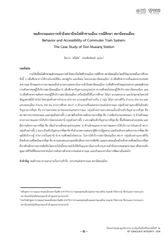 %u0e1e%u0e24%u0e15%u0e34%u0e01%u0e23%u0e23%u0e21%u0e41%u0e25%u0e30%u0e01%u0e32%u0e23%u0e40%u0e02%uf70b%u0e32%u0e16%u0e36%u0e07%u0e2a%u0e16%u0e32%u0e19%u0e35%u0e23%u0e16%u0e44%u0e1f%u0e1f%uf706%u0e32%u0e0a%u0e32%u0e19%u0e40%u0e21%u0e37%u0e2d%u0e07 %u0e01%u0e23%u0e13%u0e35%u0e28%u0e36%u0e01%u0e29%u0e32 %u0e2a%u0e16%u0e32%u0e19%u0e35%u0e14%u0e2d%u0e19%u0e40%u0e21%u0e37%u0e2d%u0e07Behavior and Accessibility of Commuter Train System: The Case Study of Don Mueang Station %u0e08%u0e34%u0e14%u0e32%u0e20%u0e32 %u0e28%u0e23%u0e35%u0e40%u0e25%u0e34%u0e281 %u0e1b%u0e23%u0e30%u0e1e%u0e31%u0e17%u0e18%uf70e%u0e1e%u0e07%u0e29%uf70e %u0e2d%u0e38%u0e1b%u0e25%u0e322%u0e1a%u0e17%u0e04%u0e31%u0e14%u0e22%uf70a%u0e2d %u0e07%u0e32%u0e19%u0e27%u0e34%u0e08%u0e31%u0e22%u0e19%u0e35%u0e49%u0e2a%u0e19%u0e43%u0e08%u0e28%u0e36%u0e01%u0e29%u0e32%u0e1e%u0e24%u0e15%u0e34%u0e01%u0e23%u0e23%u0e21%u0e41%u0e25%u0e30%u0e01%u0e32%u0e23%u0e40%u0e02%uf70b%u0e32%u0e16%u0e36%u0e07%u0e2a%u0e16%u0e32%u0e19%u0e35%u0e23%u0e16%u0e44%u0e1f%u0e1f%uf706%u0e32%u0e0a%u0e32%u0e19%u0e40%u0e21%u0e37%u0e2d%u0e07%u0e01%u0e23%u0e13%u0e35%u0e28%u0e36%u0e01%u0e29%u0e32%u0e2a%u0e16%u0e32%u0e19%u0e35%u0e14%u0e2d%u0e19%u0e40%u0e21%u0e37%u0e2d%u0e07%u0e42%u0e14%u0e22%u0e21%u0e35%u0e27%u0e31%u0e15%u0e16%u0e38%u0e1b%u0e23%u0e30%u0e2a%u0e07%u0e04%uf70e%u0e43%u0e19%u0e01%u0e32%u0e23%u0e28%u0e36%u0e01%u0e29%u0e32%u0e14%u0e31%u0e07%u0e19%u0e35%u0e49 1) %u0e40%u0e1e%u0e37%u0e48%u0e2d%u0e28%u0e36%u0e01%u0e29%u0e32%u0e01%u0e32%u0e23%u0e43%u0e0a%uf70b%u0e1b%u0e23%u0e30%u0e42%u0e22%u0e0a%u0e19%uf70e%u0e17%u0e35%u0e48%u0e14%u0e34%u0e19 %u0e40%u0e28%u0e23%u0e29%u0e10%u0e01%u0e34%u0e08 %u0e41%u0e25%u0e30%u0e2a%u0e31%u0e07%u0e04%u0e21 %u0e42%u0e14%u0e22%u0e23%u0e2d%u0e1a%u0e2a%u0e16%u0e32%u0e19%u0e35%u0e14%u0e2d%u0e19%u0e40%u0e21%u0e37%u0e2d%u0e07 2) %u0e40%u0e1e%u0e37%u0e48%u0e2d%u0e28%u0e36%u0e01%u0e29%u0e32%u0e01%u0e32%u0e23%u0e40%u0e0a%u0e37%u0e48%u0e2d%u0e21%u0e15 %uf70a%u0e2d%u0e23%u0e30%u0e1a%u0e1a%u0e02%u0e19%u0e2a%uf70a%u0e07%u0e2a%u0e32%u0e18%u0e32%u0e23%u0e13%u0e30 %u0e25%u0e31%u0e01%u0e29%u0e13%u0e30%u0e17%u0e32%u0e07%u0e01%u0e32%u0e22%u0e20%u0e32%u0e1e%u0e41%u0e25%u0e30%u0e2a%u0e34%u0e48%u0e07%u0e2d%u0e33%u0e19%u0e27%u0e22%u0e04%u0e27%u0e32%u0e21%u0e2a%u0e30%u0e14%u0e27%u0e01%u0e43%u0e19%u0e01%u0e32%u0e23%u0e40%u0e02%uf70b%u0e32%u0e16%u0e36%u0e07%u0e2a%u0e16%u0e32%u0e19%u0e35%u0e14%u0e2d%u0e19%u0e40%u0e21%u0e37%u0e2d%u0e07 3) %u0e40%u0e1e%u0e37%u0e48%u0e2d%u0e28%u0e36%u0e01%u0e29%u0e32%u0e25%u0e31%u0e01%u0e29%u0e13%u0e30%u0e1b%u0e23%u0e30%u0e0a%u0e32%u0e01%u0e23%u0e41%u0e25%u0e30%u0e1e%u0e24%u0e15%u0e01%u0e23%u0e23%u0e21%u0e34%u0e01%u0e32%u0e23%u0e40%u0e14%u0e34%u0e19%u0e17%u0e32%u0e07%u0e02%u0e2d%u0e07%u0e1c%u0e39%uf70b%u0e43%u0e0a%uf70b%u0e1a%u0e23%u0e34%u0e01%u0e32%u0e23%u0e2a%u0e16%u0e32%u0e19%u0e35%u0e14%u0e2d%u0e19%u0e40%u0e21%u0e37%u0e2d%u0e07 4) %u0e40%u0e1e%u0e37%u0e48%u0e2d%u0e28%u0e36%u0e01%u0e29%u0e32%u0e1b%uf710%u0e0d%u0e2b%u0e32%u0e41%u0e25%u0e30%u0e2d%u0e38%u0e1b%u0e2a%u0e23%u0e23%u0e04 %u0e04%u0e27%u0e32%u0e21%u0e1e%u0e36%u0e07%u0e1e%u0e2d%u0e43%u0e08%u0e02%u0e2d%u0e07%u0e1c%u0e39%uf70b%u0e43%u0e0a%uf70b%u0e1a%u0e23%u0e34%u0e01%u0e32%u0e23%u0e2a%u0e16%u0e32%u0e19%u0e35%u0e14%u0e2d%u0e19%u0e40%u0e21%u0e37%u0e2d%u0e07 %u0e41%u0e25%u0e30 5) %u0e40%u0e1e%u0e37%u0e48%u0e2d%u0e28%u0e36%u0e01%u0e29%u0e32%u0e04%u0e27%u0e32%u0e21%u0e15%uf70b%u0e2d%u0e07%u0e01%u0e32%u0e23%u0e02%u0e2d%u0e07%u0e1c%u0e39%uf70b%u0e43%u0e0a%uf70b%u0e1a%u0e23%u0e34%u0e01%u0e32%u0e23%u0e2a%u0e16%u0e32%u0e19%u0e35%u0e14%u0e2d%u0e19%u0e40%u0e21%u0e37%u0e2d%u0e07 %u0e40%u0e04%u0e23%u0e37%u0e48%u0e2d%u0e07%u0e21%u0e37%u0e2d%u0e17%u0e35%u0e48%u0e43%u0e0a%uf70b%u0e43%u0e19%u0e01%u0e32%u0e23%u0e28%u0e36%u0e01%u0e29%u0e32 %u0e44%u0e14%uf70b%u0e41%u0e01%uf70a%u0e41%u0e1a%u0e1a%u0e2a%u0e2d%u0e1a%u0e16%u0e32%u0e21 %u0e41%u0e25%u0e30%u0e42%u0e1b%u0e23%u0e41%u0e01%u0e23%u0e21%u0e27%u0e34%u0e40%u0e04%u0e23%u0e32%u0e30%u0e2b%uf70e%u0e02%uf70b%u0e2d%u0e21%u0e39%u0e25%u0e17%u0e32%u0e07%u0e2a%u0e16%u0e34%u0e15%u0e34 (SPSS) %u0e42%u0e14%u0e22%u0e01%u0e25%u0e38%uf70a%u0e21%u0e15%u0e31%u0e27%u0e2d%u0e22%uf70a%u0e32%u0e07%u0e08%u0e33%u0e19%u0e27%u0e19 400 %u0e04%u0e19 %u0e41%u0e1a%uf70a%u0e07%u0e01%u0e25%u0e38%uf70a%u0e21%u0e15%u0e31%u0e27%u0e2d%u0e22%uf70a%u0e32%u0e07%u0e40%u0e1b%uf712%u0e19 2 %u0e01%u0e25%u0e38%uf70a%u0e21 %u0e44%u0e14%uf70b%u0e41%u0e01%uf70a%u0e41%u0e02%u0e27%u0e07%u0e2a%u0e35%u0e01%u0e31%u0e19 %u0e08%u0e33%u0e19%u0e27%u0e19 200 %u0e04%u0e19 %u0e41%u0e25%u0e30 %u0e41%u0e02%u0e27%u0e07%u0e14%u0e2d%u0e19%u0e40%u0e21%u0e37%u0e2d%u0e07 %u0e08%u0e33%u0e19%u0e27%u0e19 200 %u0e04%u0e19 %u0e08%u0e32%u0e01%u0e01%u0e32%u0e23%u0e28%u0e36%u0e01%u0e29%u0e32 %u0e1e%u0e1a%u0e27%uf70a%u0e32 1) %u0e14%uf70b%u0e32%u0e19%u0e01%u0e32%u0e23%u0e40%u0e0a%u0e37%u0e48%u0e2d%u0e21%u0e15%uf70a%u0e2d%u0e23%u0e30%u0e1a%u0e1a%u0e02%u0e19%u0e2a%uf70a%u0e07%u0e2a%u0e32%u0e18%u0e32%u0e23%u0e13%u0e30 %u0e01%u0e25%u0e38%uf70a%u0e21%u0e15%u0e31%u0e27%u0e2d%u0e22%uf70a%u0e32%u0e07%u0e41%u0e02%u0e27%u0e07%u0e2a%u0e35%u0e01%u0e31%u0e19%u0e21%u0e35%u0e23%u0e30%u0e14%u0e31%u0e1a%u0e1b%uf710%u0e0d%u0e2b%u0e32%u0e21%u0e32%u0e01%u0e17%u0e35 %u0e48%u0e2a%u0e38%u0e14 %u0e04%u0e37%u0e2d %u0e04%u0e27%u0e32%u0e21%u0e15%u0e23%u0e07%u0e15%uf70a%u0e2d%u0e40%u0e27%u0e25%u0e32%u0e02%u0e2d%u0e07%u0e23%u0e16%u0e02%u0e19%u0e2a%uf70a%u0e07%u0e2a%u0e32%u0e18%u0e32%u0e23%u0e13%u0e30 %u0e01%u0e25%u0e38 %uf70a%u0e21%u0e15%u0e31%u0e27%u0e2d%u0e22%uf70a%u0e32%u0e07%u0e41%u0e02%u0e27%u0e07%u0e14%u0e2d%u0e19%u0e40%u0e21%u0e37%u0e2d%u0e07%u0e21%u0e35%u0e23%u0e30%u0e14%u0e31%u0e1a%u0e1b%uf710%u0e0d%u0e2b%u0e32%u0e21%u0e32%u0e01%u0e17%u0e35 %u0e48%u0e2a%u0e38%u0e14 %u0e04%u0e37%u0e2d %u0e2a%u0e20%u0e32%u0e1e%u0e01%u0e32%u0e23%u0e08%u0e23%u0e32%u0e08%u0e23%u0e2b%u0e19%u0e32%u0e41%u0e19%uf70a%u0e19 %u0e41%u0e25%u0e30%u0e01%u0e25%u0e38%uf70a%u0e21%u0e15%u0e31%u0e27%u0e2d%u0e22%uf70a%u0e32%u0e07%u0e17%u0e31%u0e49%u0e07 2 %u0e41%u0e02%u0e27%u0e07 %u0e21%u0e35%u0e23%u0e30%u0e14%u0e31%u0e1a%u0e04%u0e27%u0e32%u0e21%u0e15%uf70b%u0e2d%u0e07%u0e01%u0e32