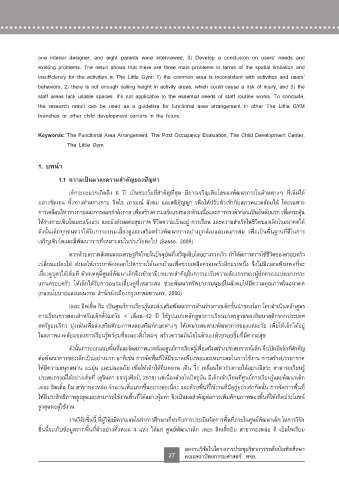 Keywords: The Functional Area Arrangement, The Post Occupancy Evaluation, The Child Development Center,