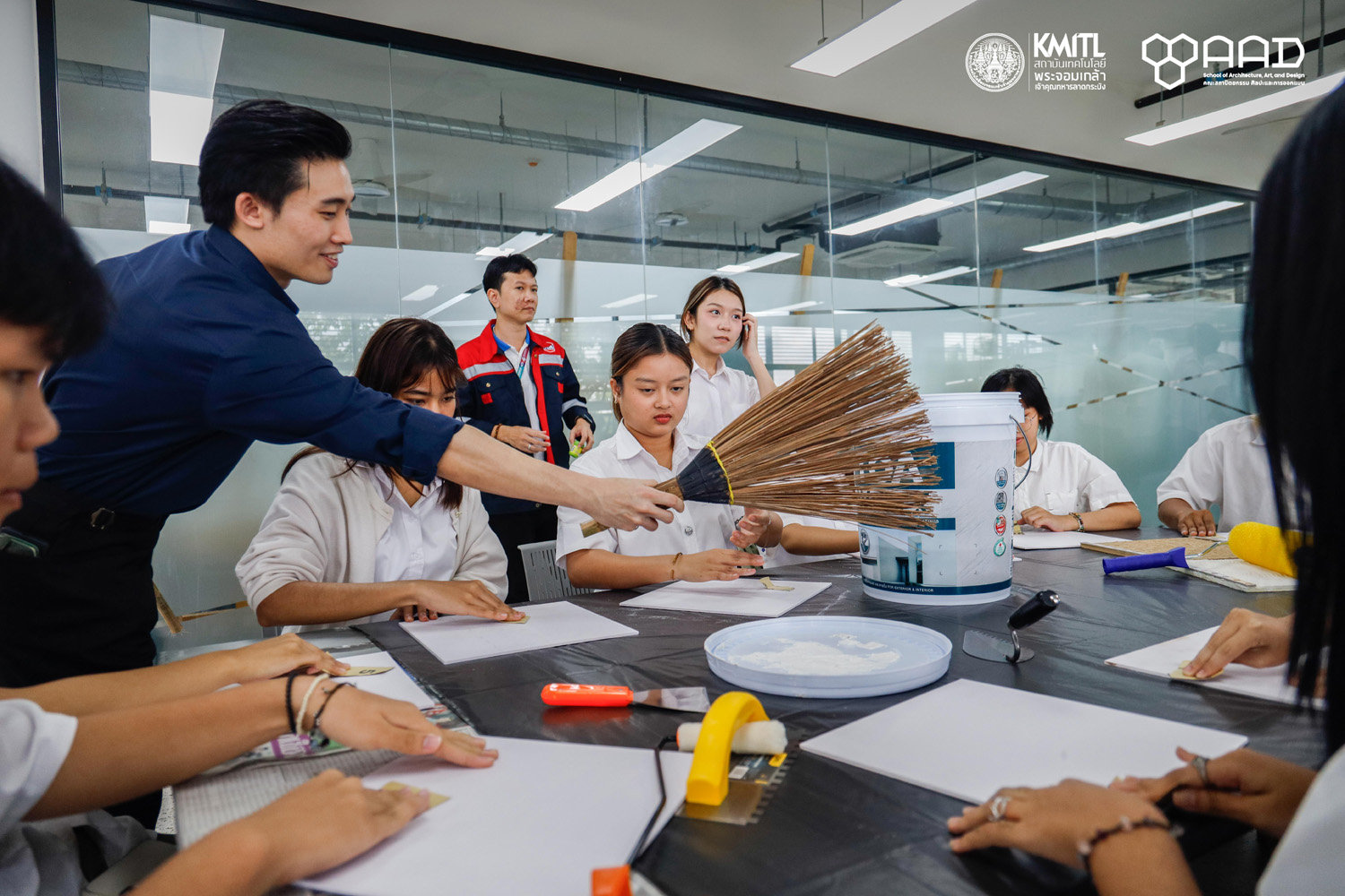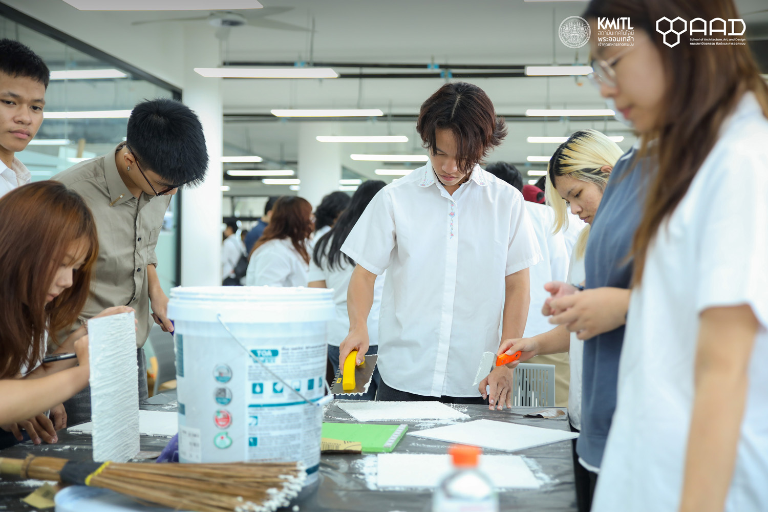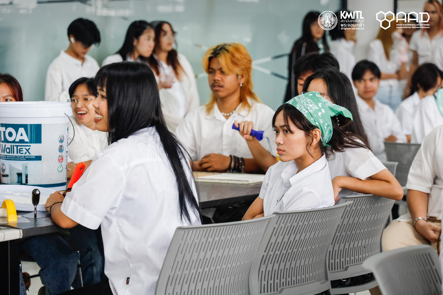 กิจกรรมที่นักศึกษาจากภาควิชาสถาปัตยกรรมกว่า 180 ชีวิต ได้มาร่วมค้นหาแรงบันดาลใจใหม่ ๆ ผ่านการเรียนรู้ “สีสร้างพื้นผิว (Texture Color)” ที่ไม่เพียงแต่ได้รู้จักเทคนิคการใช้เครื่องมือ แต่ยังได้ทดลองผสมผสานสิ่งรอบตัวเพื่อสร้างลวดลายเฉพาะตัวที่สะท้อนเอกลักษณ์ของแต่ละคน 🖌️🎨
