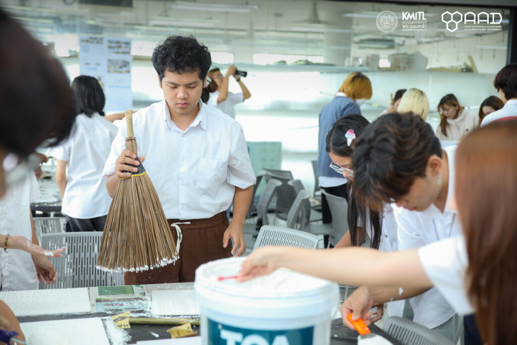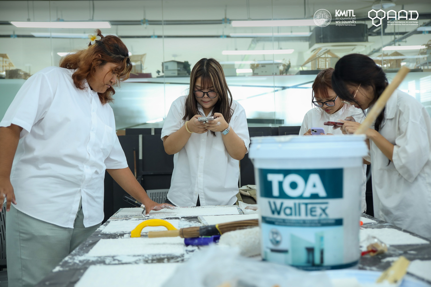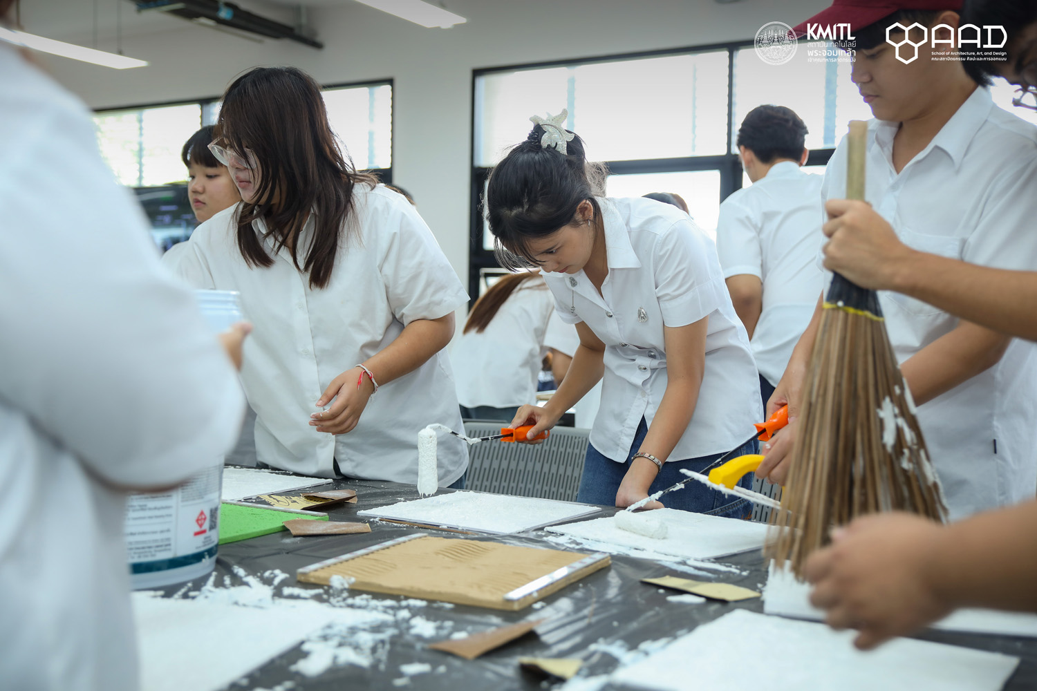 กิจกรรมที่นักศึกษาจากภาควิชาสถาปัตยกรรมกว่า 180 ชีวิต ได้มาร่วมค้นหาแรงบันดาลใจใหม่ ๆ ผ่านการเรียนรู้ “สีสร้างพื้นผิว (Texture Color)” ที่ไม่เพียงแต่ได้รู้จักเทคนิคการใช้เครื่องมือ แต่ยังได้ทดลองผสมผสานสิ่งรอบตัวเพื่อสร้างลวดลายเฉพาะตัวที่สะท้อนเอกลักษณ์ของแต่ละคน 🖌️🎨